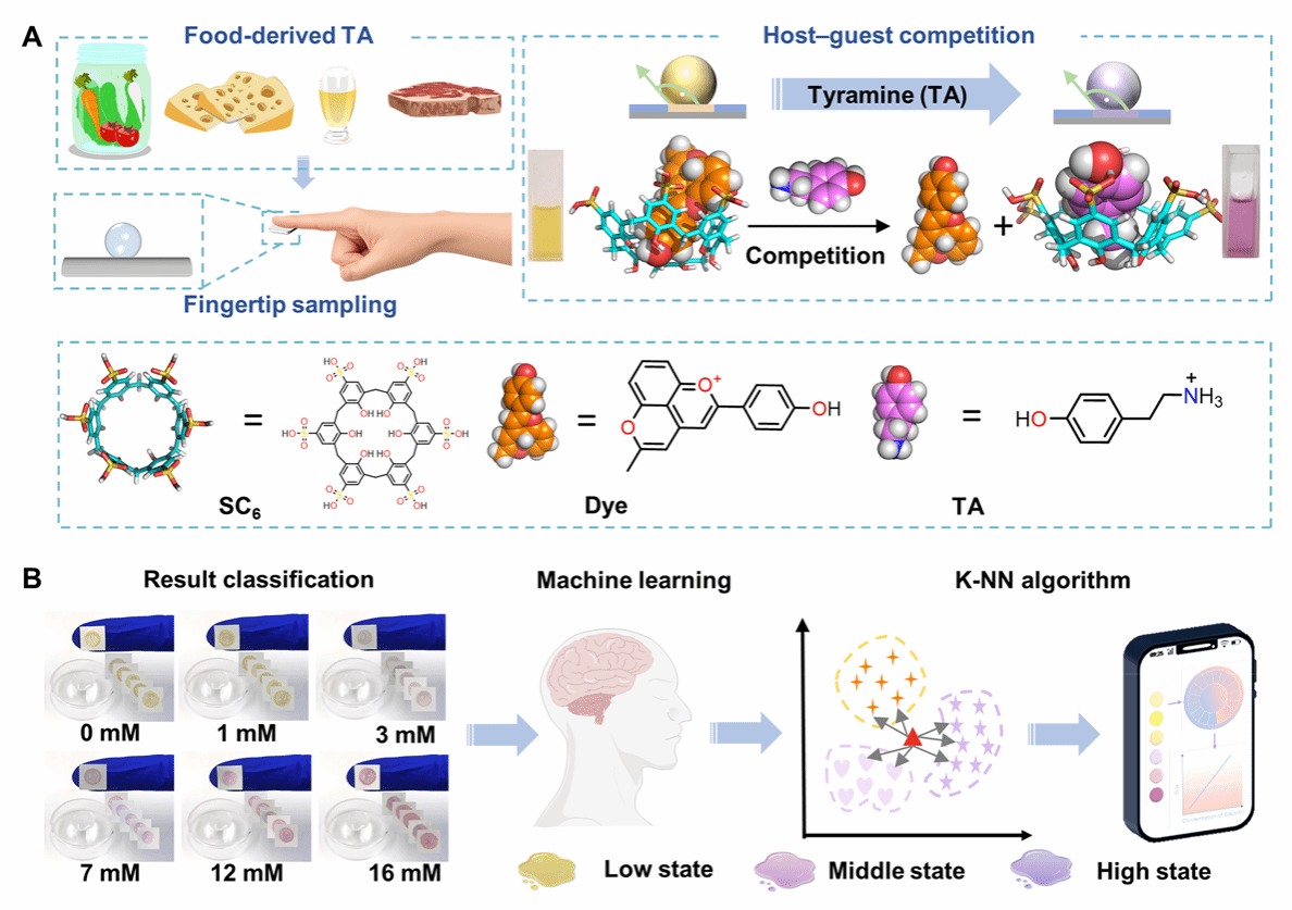 Recently, Shiyao Li and Xueling Lin from the College of Chemistry and Environmental Engineering, Shenzhen University, published a research paper as co-first authors in the Nature Index journal Analytical Chemistry (Impact Factor: 6.7; CAS JCR Q1; TOP journal). The paper is entitled “A Wearable Supramolecular Fingertip Sensor for Colorimetric Detection of Food-Derived Tyramine”. The study was completed under the joint supervision of Assistant Professor Conghui Liu and Associate Professor Tailin Xu, who served as co-corresponding authors.