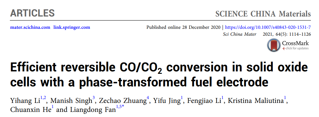 The research paper entitled "Efficient reversible CO/CO2 conversion in solid oxide cells with a phase-transformed fuel electrode phase-change fuel electrode realizes efficient and reversible CO/CO2 conversion in solid oxide cells" is led by Li Yihang and Prof. Fan at Shenzhen University and was published in the international journal Science China-Materials (China Science Series - the flagship journal in materials science, impact factor 8.64) and has been cited 19 times so far.