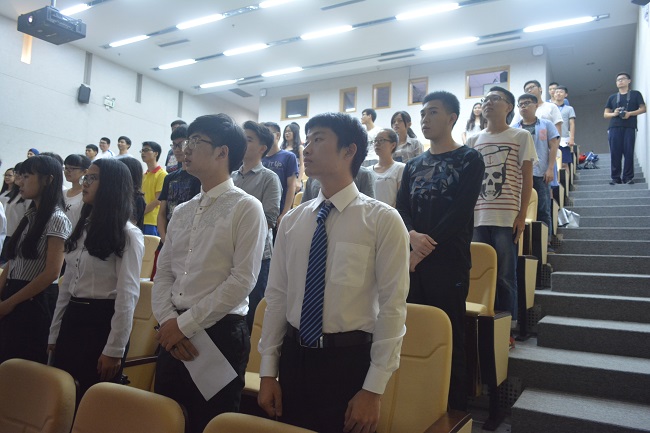 大会第一项内容,全体人员起立奏唱中华人民共和国国歌。