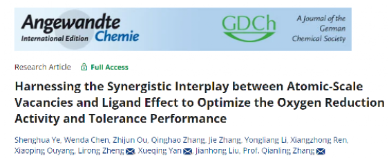 1、深圳大学张黔玲教授团队在期刊《Angewandte Chemie Internatioal Edition》上发表题为《Harnessing the Synergistic Interplay between Atomic-Scale Vacancies and Ligand Effect to Optimize the Oxygen Reduction Activity and Tolerance Performance》的研究论文,该论文并被评为Hot paper。共同第一作者为叶盛华研究员以及陈文达硕士,深圳大学张黔玲教授、刘剑洪教授、北京大学颜学庆教授以及高能所郑黎荣研究员是共同通讯作者。