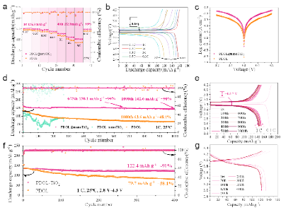 Herein, a strategy of in-situ hybrid crosslinking polymerization of TiO2 nanoparticles is proposed for highly stable polymer composite electrolytes (NHCPE) with a ultrahigh ionic conductivity of 1.74 × 10-3 S cm-1 at 25℃, and a high lithium ion transference number of 0.725. These properties enable the composed lithium symmetric battery to be stably deposited/plating off at 0.5 mA cm-2 for more than 1000 h. Moreover, the assembled LFP|PDOL@nanoTiO2|Li battery exhibits a superior specific discharge capacity of 142.6 mAh g-1 at 1 C and 25℃, and a ultrahigh capacity retention rate of 90% after 1000 cycles. The proposed PDOL@nanoTiO2 NHCPE greatly inhibits the defects of easy agglomeration of composite electrolytes, solves the problems of easy decomposition, low thermal stability and poor safety of polyether electrolytes, and opens up a new way for the design and industrial application of high-stability composite polymer electrolytes.