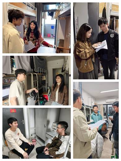 辅导员陈洁琼、梁晓思、王子阁、黄幸璐、肖腾龙带领学生干部逐一走访留校学生宿舍,对学生宿舍进行了全面的消防安全检查,重点排查用电安全、违规电器使用等情况,并对发现的安全隐患现场督促整改。走访中,辅导员向同学们详细讲解了寒假期间宿舍安全注意事项,包括人走断电、不使用违规电器、妥善保管个人物品等,特别提醒留校同学严格遵守宿舍管理规定,提高防火防盗防诈骗意识,确保人身与财产安全。