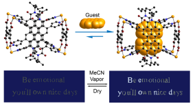 金属笼状化合物是通过配位作用构筑的三维笼状结构,被广泛地应用于吸附与分离,控制释放以及催化等领域。将荧光性质引入到该类化合物中来构筑荧光金属笼状化合物,可以进一步开拓其作为化学与生物传感,光电器件的应用。然而,由于过渡金属的重原子效应以及金属到配体的电荷转移等一系列原因,发光金属笼状化合物的研究还比较少。针对这一问题,我们利用四苯基乙烯以及苝酰亚胺等荧光分子作为配体,通过金属配位作用构筑了一系列荧光金属笼状化合物,并拓展了该类笼状化合物在化学传感,有机光催化以及信息加密等领域的应用。