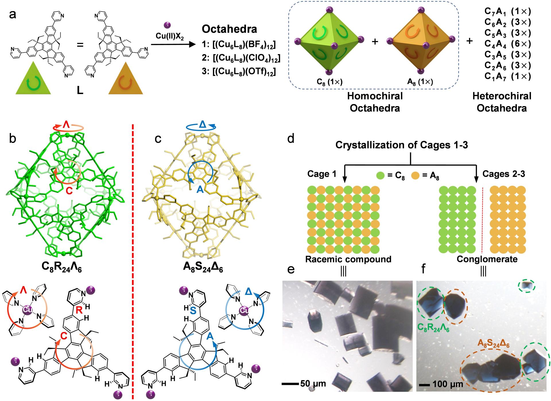 近日,深圳大学化学与环境工程学院李霄鹏教授、王恒副教授团队在《Angew. Chem. Int. Ed.》(影响因子15.336,中科院JCR一区,TOP期刊)上发表了题目为 《Chiral Metallo-Supramolecular Octahedral Cages with Spontaneous Resolution》的研究论文。该研究中实现了配位超分子八面体的巴斯德拆分。