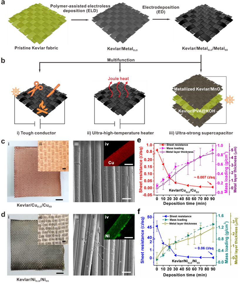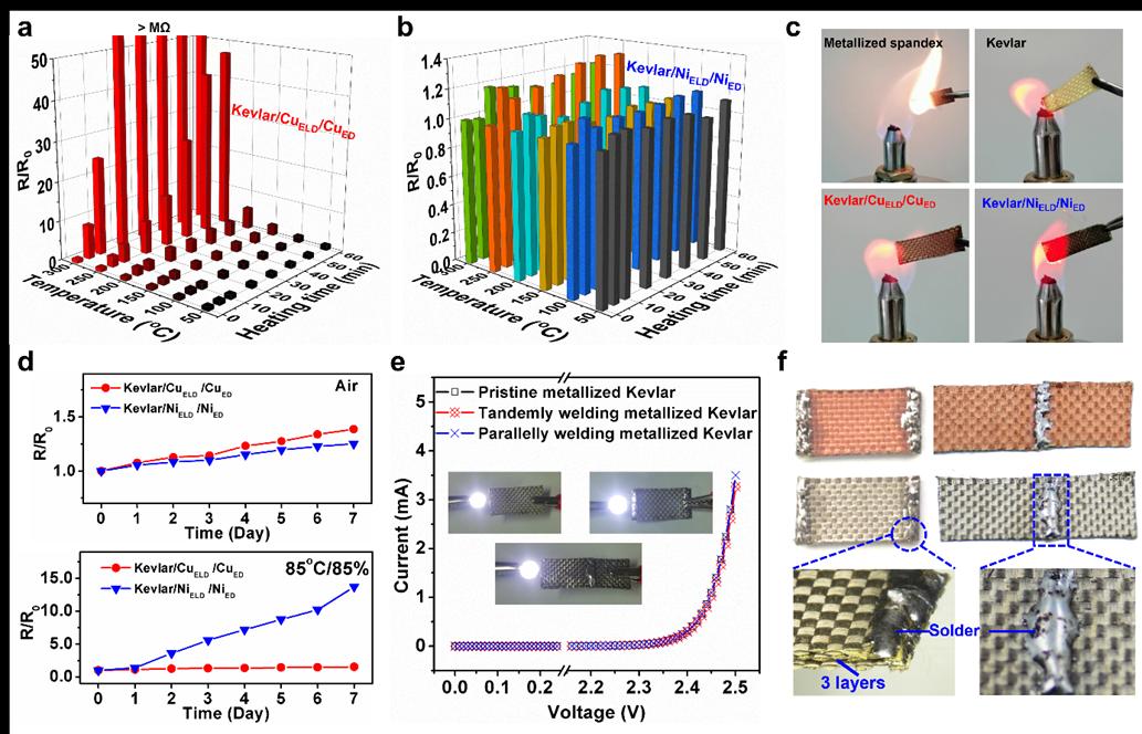 Ultra-Strong, Flame-Retardant, Intrinsically Weldable, and Highly Conductive Metallized Kevlar Fabrics.