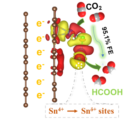 通过构建具有中空纳米管结构的双金属氧化物(SnCu-CNS),调节了Sn和Cu活性位点的氧化状态,并将其用于CO2电还原。SnCu-CNS具有增强的电负性,可产生独特的Snδ+中心。基于密度泛函理论计算,Snδ+中心与CuO位点以及反应物之间能量差被增强,加速了电子转移并降低了关键中间体的能垒,从而获得更高的甲酸盐选择性。相关研究内容以“Oxidation State Modulation of Bimetallic Tin-copper Oxide Nanotubes for Selective CO2 Electroreduction to Formate”为题发表于Small (影响因子15.153,中科院1区)。我院蒋兴星博士后为第一作者,我院教师杨恒攀研究员与何传新教授为通讯作者。