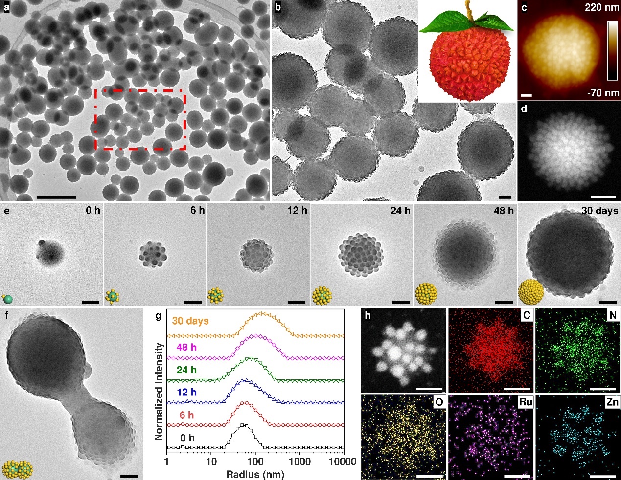 近日,深圳大学化学与环境工程学院李霄鹏特聘教授与於秀君助理教授团队在化学权威期刊J. Am. Chem. Soc.(影响因子16.383,中科院JCR一区,TOP期刊)在线发表了以“Non-equilibrium Nanoassemblies Constructed by Confined Coordination on a Polymer Chain”为题目的研究论文。该研究工作通过聚合物链的限域效应实现了对配位驱动自组装速率的调控,成功地构筑了一系列非平衡态荔枝状纳米结构。