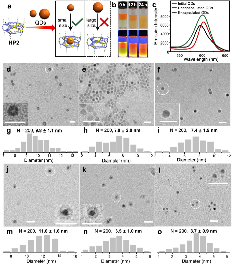 图2. 超分子笼对量子点的尺寸筛选及包结