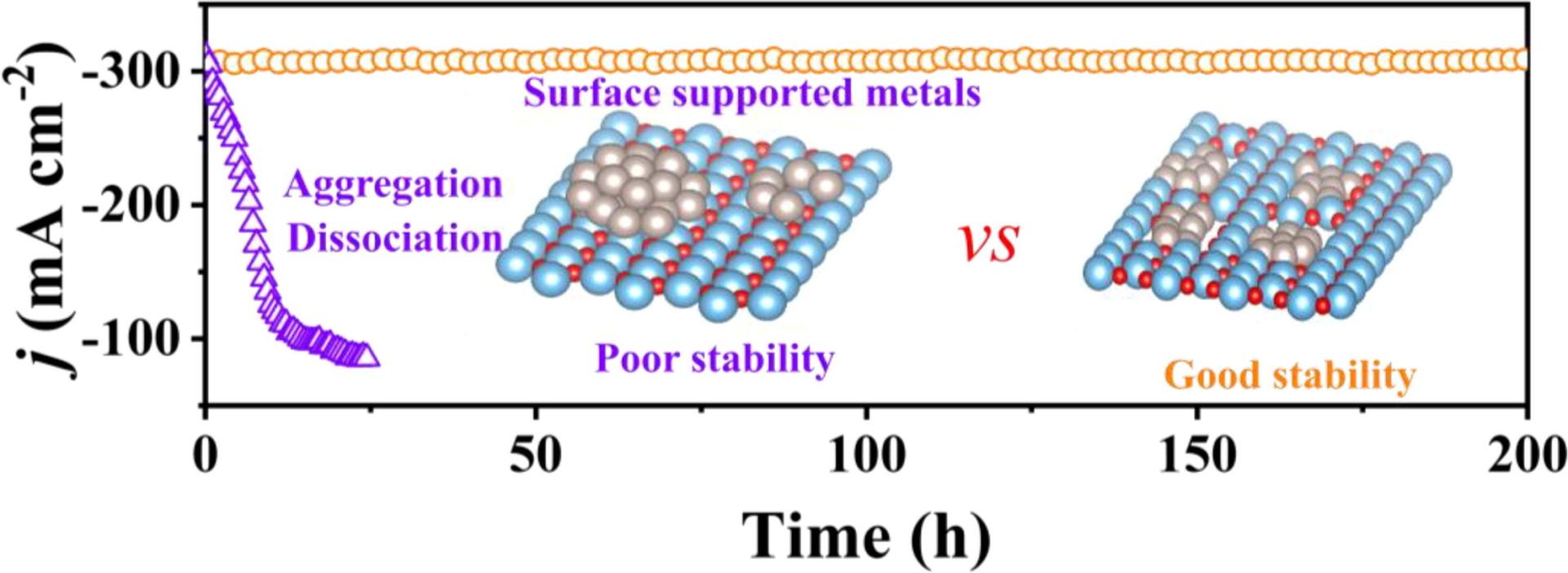 Ru基纳米材料是碱性介质中析氢反应(HER)的最佳电催化剂之一,但它们的稳定性仍然有待提高,尤其是在实际应用的苛刻条件下(即80 °C,6 M KOH)。我们发现,由于Ru与载体之间仅存在弱相互作用,传统表面负载的Ru电催化剂实际上在恶劣条件下很不稳定。在这里,我们报告了一种晶格限域的方法,即通过将超细Ru团簇限制在TiO2晶格框架中的方法,来同时增强Ru的稳定性和内在活性。令人印象深刻的是,这种受限制的Ru在苛刻条件下为HER提供了出色的性能,例如在800 mA cm-2时仅需116 mV的小过电位,在300 mA cm-2时可实现200小时连续HER的长期稳定性。正如计算和实验结果所揭示的那样,晶格限域策略可以显著增强Ru和TiO2之间的相互作用,促进电子从Ru转移到TiO2,从而很大程度上加强了Ru的稳定性,避免了Ru在稳定性测试期间的解离和聚集。因此,晶格限域策略是作为提高电催化剂活性和稳定性的可靠方法之一。
