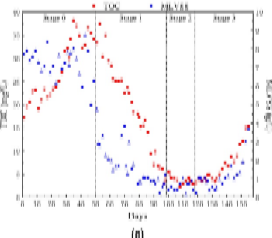 正如在第三阶段和其他一些研究中观察到的那样,DNRA和厌氧氨氧化可以维持氮去除的平衡系统。DNRA的积极作用为文献中关于厌氧氨氧化系统为何没有相同的理论值NH4+-N: NO2--N为1.33提供了可信的答案,对于一些观察来说,添加有机碳可以增强厌氧氨氧化活性也是一种合理的机制。另一方面,由于DNRA细菌积累的NO2--N 浓度可能对厌氧氨氧化细菌产生不利影响,甚至导致厌氧氨氧化反应器崩溃。例如,DNRA细菌的过度生长打破了氮代谢平衡,导致高NO2--N浓度的厌氧氨氧化抑制(第一阶段性能)。