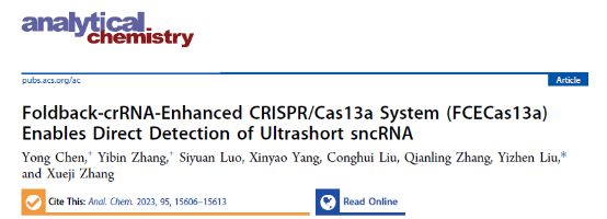 针对这一挑战,深圳大学化学与环境工程学院刘翼振副教授在国际分析化学顶级期刊、自然指数收录期刊《Analytical Chemistry》上发表了题为“Foldback-crRNA-Enhanced CRISPR/Cas13a System (FCECas13a) Enables Direct Detection of Ultrashort sncRNA”的研究成果。深圳大学为独立通讯单位,已申请国家发明专利(CN116287129A)。 https://doi.org/10.1021/acs.analchem.3c02687