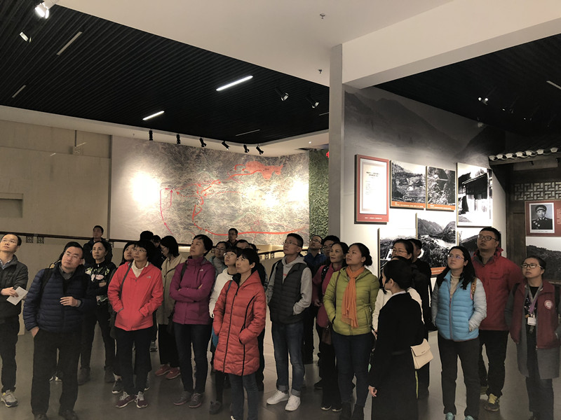 下午,大家来到习水县土城镇四渡赤水纪念馆,在纪念馆讲解员的讲解和指导下,全体成员从纪念馆六个单位逐一参观了当年中央红军四次渡过赤水河的战斗经历。通过听讲解、观看展出图片、文字和实物资料,生动再现了毛泽东及其战友率领中央红军 3 万余人四次飞渡赤水河,摆脱 40 万敌军围追堵截,实现战略转移的历史画面。以全新的布展理念诠释了毛泽东军事生涯的得意之笔。让大家体会了当年红军战士们在艰苦卓绝的战争环境下,伟岸而坚定的共产主义革命信念,抛头颅、洒热血的大无畏牺牲精神。