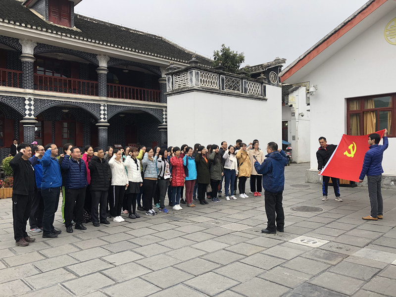 第二天,大家来到了遵义会议旧址,在鲜红的党旗前,党委书记孙宏元带领全体党员一起重温入党誓词,再次庄严地许下了对党和人民的忠诚誓言。遵义会议是中国共产党历史上一个生死攸关的转折点,确立了以毛泽东为代表的马克思主义的正确路线在中共中央的领导地位,从而使党领导的民主革命和革命战争转危为安。大家跟随讲解员的指引和解说参观了会址和陈列馆,整个馆内展陈内容分为“战略转移、开始长征”,“遵义会议、伟大转折”,“转战贵州、出奇制胜”,“勇往直前、走向胜利”,“遵义会议、光辉永存”五个部分。大家重温了革命历史,缅怀了革命先烈,切身感受了红军的革命精神,也使自己的心灵得到了一次净化和升华。