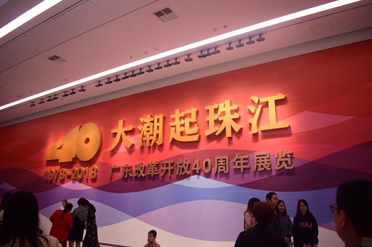 展览以照片、实物、视频、美术作品等形式全景展示了广东改革开放40年的峥嵘岁月。1978年12月,党的十一届三中全会作出把党和国家的工作重心转移到经济建设当中来、实行改革开放的历史性决策。从此,中华民族大踏步赶上时代,迎来了从站起来、富起来到强起来的伟大飞跃。