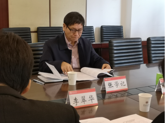 2019年12月3日上午,化学与环境工程学院党委在粤海校区汇元楼207会议室召开“不忘初心、牢记使命”主题教育专题民主生活会。出席会议的有深圳大学副校长张学记,化学与环境工程学院党委书记李翠华、学院院长任祥忠、副院长何传新、副院长杨波和学院党委副书记孙宁,列席会议人员有学院副院长李永亮。会议由学院党委书记李翠华主持。