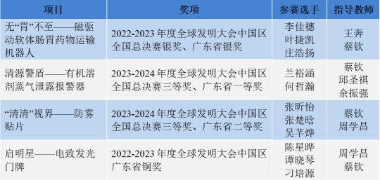 化学教职工党支部与深大附中建立合作,开设“化院科学创新营”,大中小一体化培养拔尖创新人才。2022年9月以来,深大附中选拔了两批优秀高中生进入我院化学教工支部党员教授实验室,开展科研项目和发明创新实践。在我院教授团队和深大附中老师的共同指导下,附中学生在全球发明大会(ICC)上连续两年取得了令人瞩目的成绩。2023年,支部党员王奔、支部书记周学昌指导的团队分别获得全球发明大会中国赛区银奖和广东赛区铜奖;2024年,支部书记周学昌、支部委员余振强指导的团队均获得全球发明大会中国赛区三等奖。