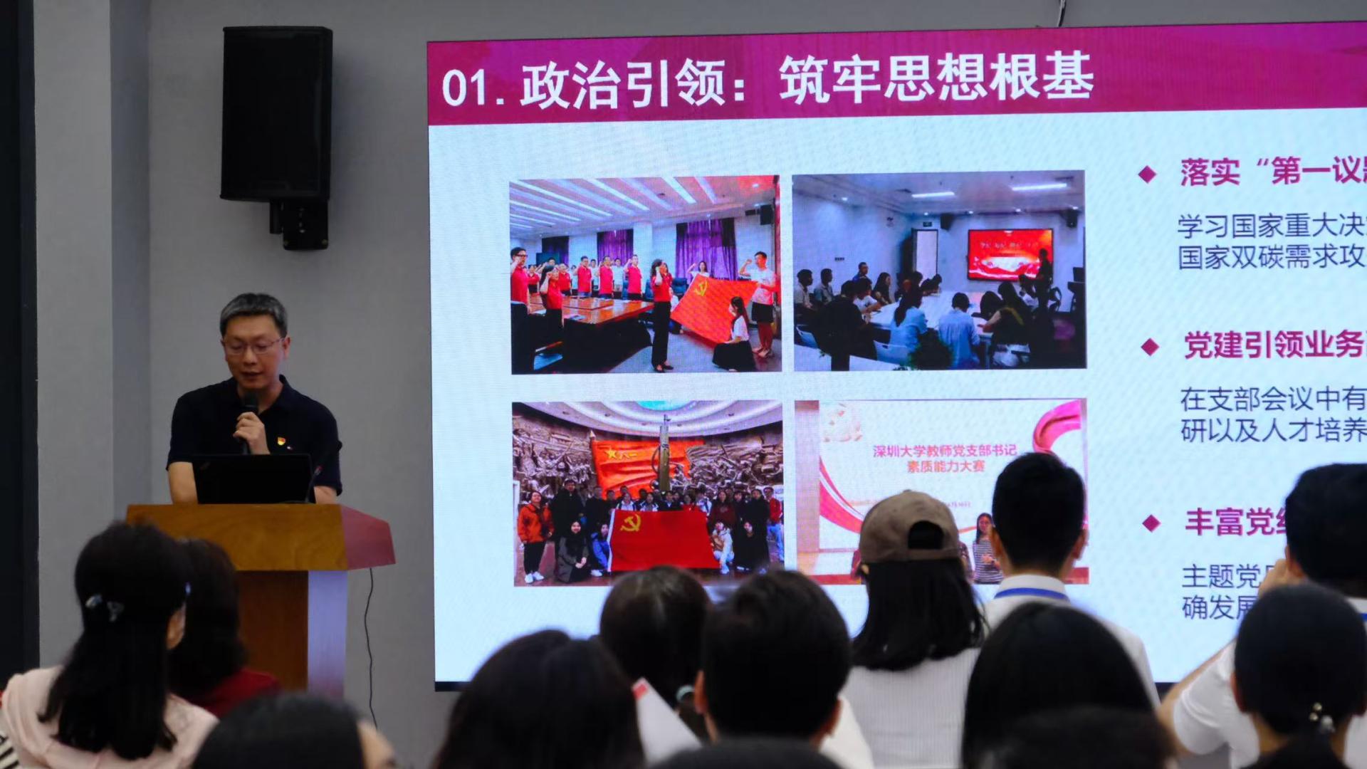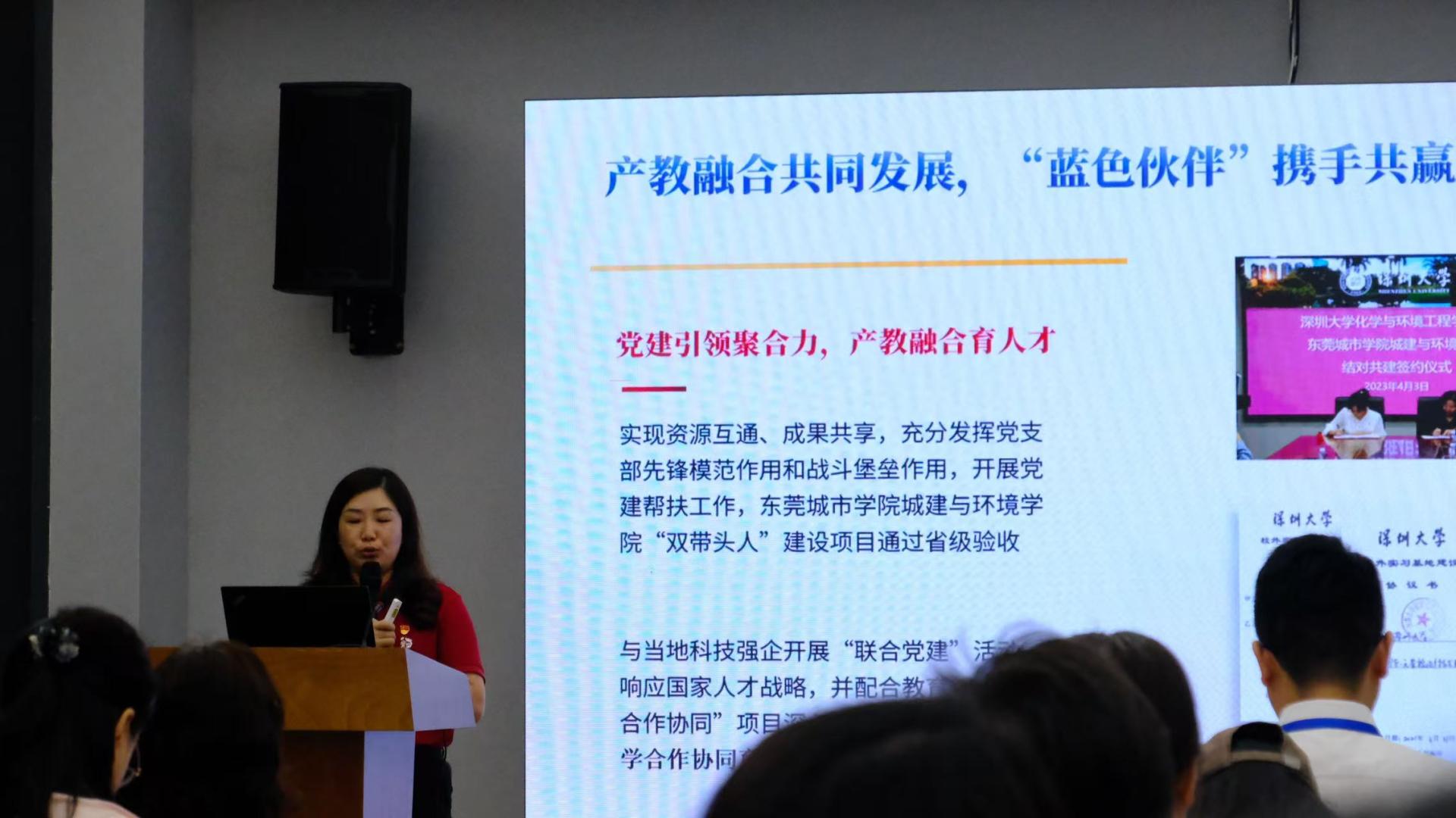 能源教工党支部书记吴其兴以“新能源建未来”为主题,分享了全国样板支部、“强国行”专项行动团队的建设经验,重点阐释党建与学科建设、专业发展、人才队伍、立德树人深度融合的“四维机制”;学院副院长、环境教工党支部书记李菊英分享了广东省党建工作样板支部的建设经验,着重介绍了“彩虹工程”党建工作体系,以“七色赋能”推动生态文明建设与立德树人同频共振的生动实践。