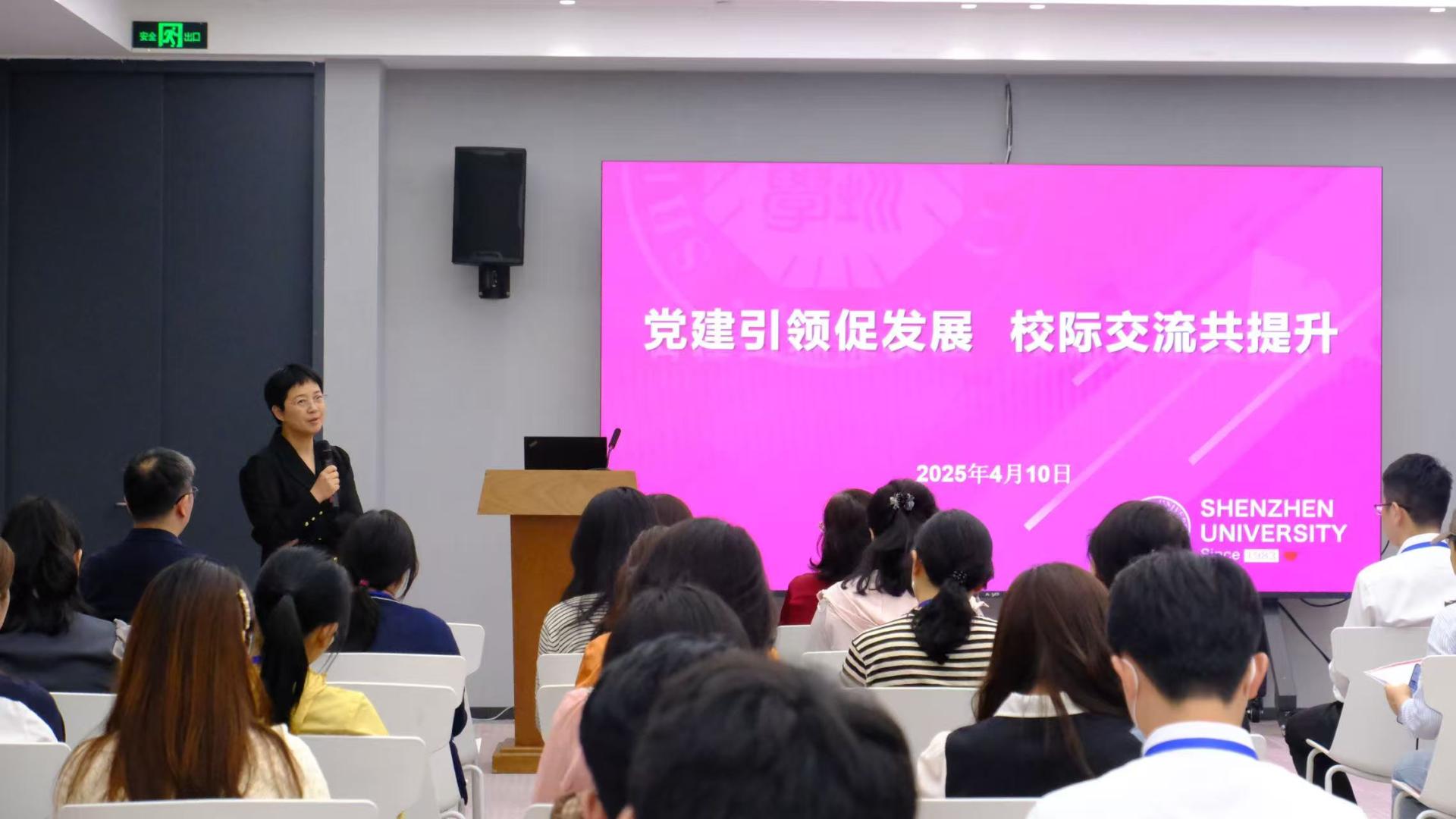 在守正楼A213报告厅举行了党建交流会,学院党委副书记徐晓玲主持会议。党委书记李翠华致欢迎辞,回顾了深圳大学扎根特区、服务国家的办学历程,介绍了我校以改革创新为基因,在人才培养、科研创新、服务地方发展等方面取得了一系列令人瞩目的成就,成为高等教育领域的“深圳速度”典范。