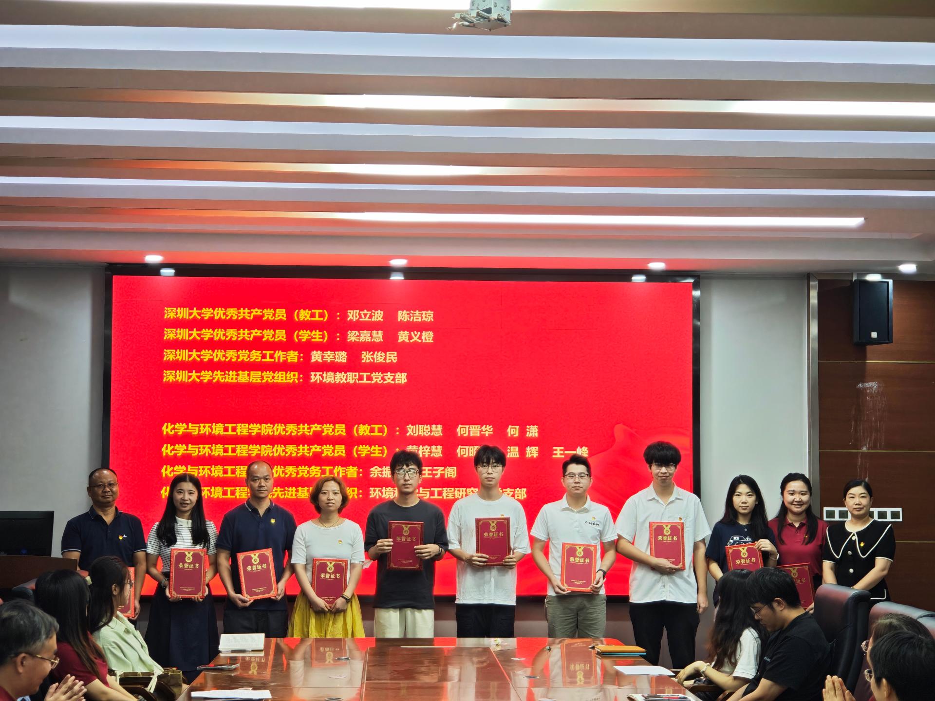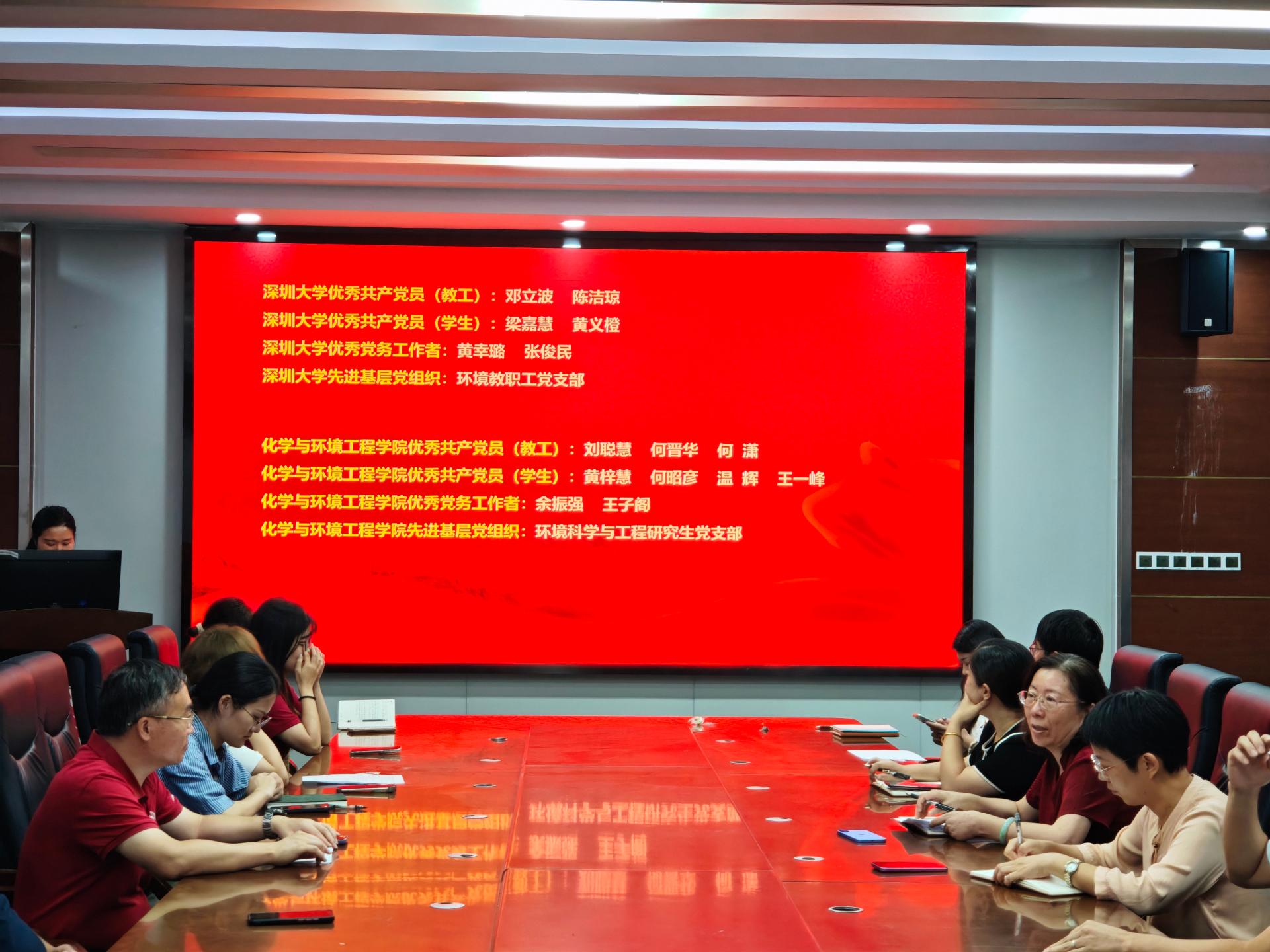 为庆祝中国共产党成立104周年,激励全院党员坚定理想信念、凝聚奋进力量,7月1日上午,化学与环境工程学院党委在守信楼420会议室隆重举行2025年“庆七一”主题党日活动。学院党委书记李翠华、党委副书记徐晓玲、副院长兼党支部书记李菊英,获表彰人员及各支部代表齐聚一堂,共同庆祝党的生日。活动由学院党建组织员向帅文主持。