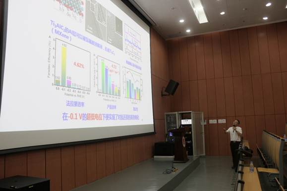 互动环节中,王海辉教授就电催化氮还原合成氨的具体实验过程及方法,以及目前世界上如美、欧在“氨经济”方面的情况等与现场师生进行了交流。他认为,“做科研不能只挑容易的做,要敢于攻克难关”,电催化氮还原合成氨在世界范围内都有相当广阔的前景,期待在座师生也能开展相关研究。