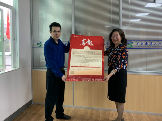 4月28上午,化学与环境工程学院李翠华书记、化学系主任孙灵娜老师等4人赴广州第六中学,进行招生宣传,并为高三年级老师和19个班级的学生送去了喜报、高考日历、招生宣传简章等一系列纪念品。