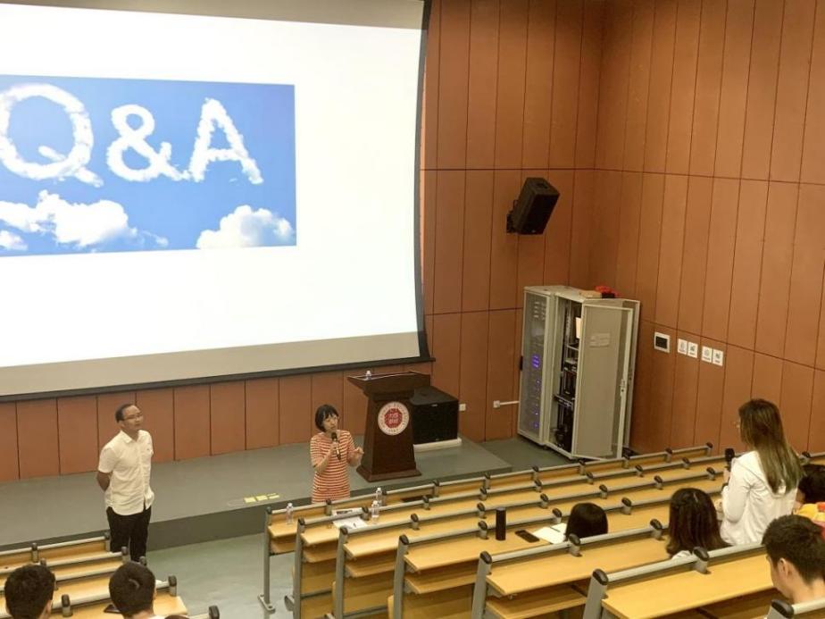 在问答环节,化环学院外事秘书郭凯老师鼓励将来有志于出国留学的同学及时关注留基委网站、学校公文通、学院主页及公众号等,积极备考雅思、托福,为出国出境交换/留学做好准备,努力提升学业成绩,以提高未来留学申请的命中概率。