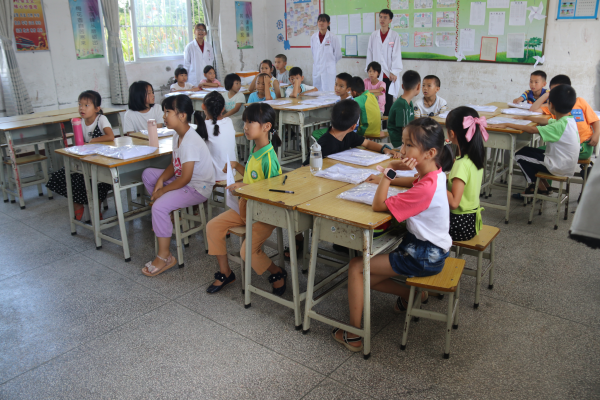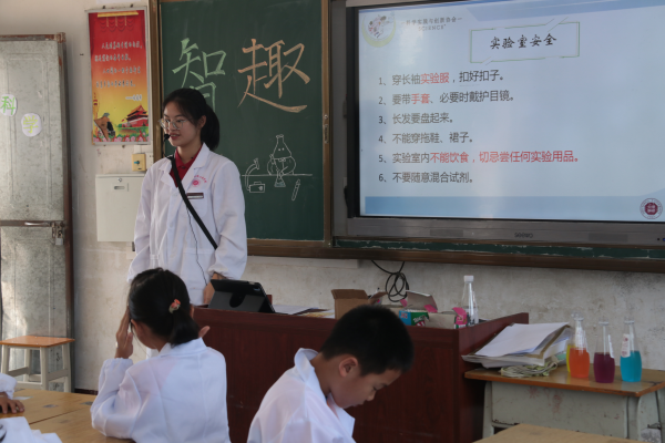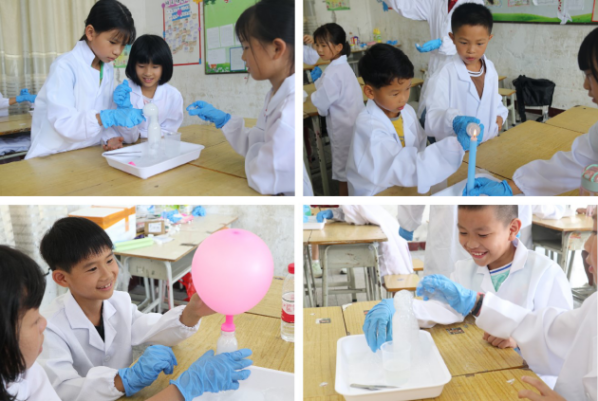 在支教的过程中,同学们发现乡村教育资源匮乏,孩子们腼腆害羞,第一次见到小老师有些生疏,课上不敢发言。团队成员们为了更好地融入到当地学生当中,积极在课前、课后组织小游戏,跟学生们积极互动,联络感情。为了给当地学生更好地学习体验,同学们克服重重困难,每天早起去学校准备实验器材,晚上修改教案到深夜,乐此不疲。