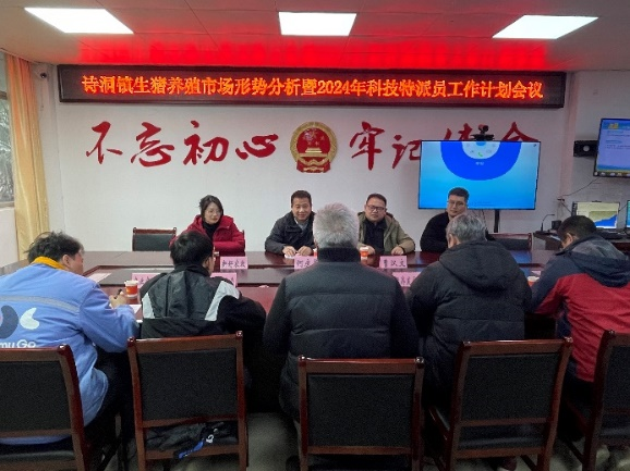 1月24日下午,我院教工二支部副书记、诗洞镇驻镇帮镇扶村农村科技特派员团队队长何庆华、新希望集团养猪事业部广东分公司总经理曹汉文,肇庆新好农牧公司总经理莫业满,广东省佛山市顺德区北窖镇驻诗洞镇帮扶工作队队长谢俊升、副队长张伟敏,诗洞镇经济发展办、农业农村办、乡村振兴办相关负责人与养殖户代表参会,就生猪市场形势和养殖技术需求进行了座谈。特派员队长何庆华对2023年工作进行了总结,并对2024年重点工作进行了规划和展望。