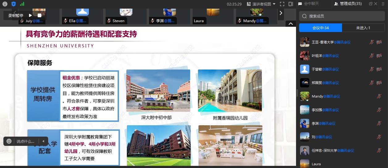 李菊英副院长详细介绍了深圳大学的人才政策和人才项目。她解读了学校在人才成长通道、团队建设支持、薪酬待遇、科研经费、科研团队配套和生活保障等方面的政策措施。并重点介绍了国家自然科学基金优秀青年科学家基金项目(海外)和深圳大学“百人计划”制度,为与会青年学者提供了丰富的信息和指导。
