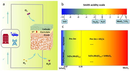 图1. SOFC工作原理以及本工作中采用Smith酸度理论示意图