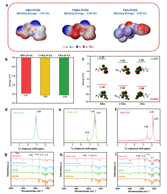 本文中,我们选择了不同电子基团的单体(如-OH为电子供体基团,-CN和-F为电子吸收基团),以研究这些基团特性对PIPS过程的影响,并阐明固态锂金属电池中性能变化的结果。实验显示,含有-CN和-F基团的单体引起了相分离,形成了一个被聚合物相包围的3D塑晶相。值得注意的是,使用-F单体合成的PCEE(FBA-PCEE)在30°C下具有高达2.02 mS cm⁻¹的离子导电性、高达0.75的锂离子迁移数以及5.1 V的宽电化学窗口。此外,FBA-PCEE在锂金属对称电池中表现出与锂金属阳极的优良界面稳定性。引入极性-F基团增强了聚合物的电子吸引能力,促进了聚合物段的低能量迁移,从而确保了全固态锂金属电池(ASSLMB)中的优异电化学性能。本研究通过聚合物化学诱导相分离为高性能PCEEs和高能量密度的聚合物锂金属电池的设计提供了新的见解。