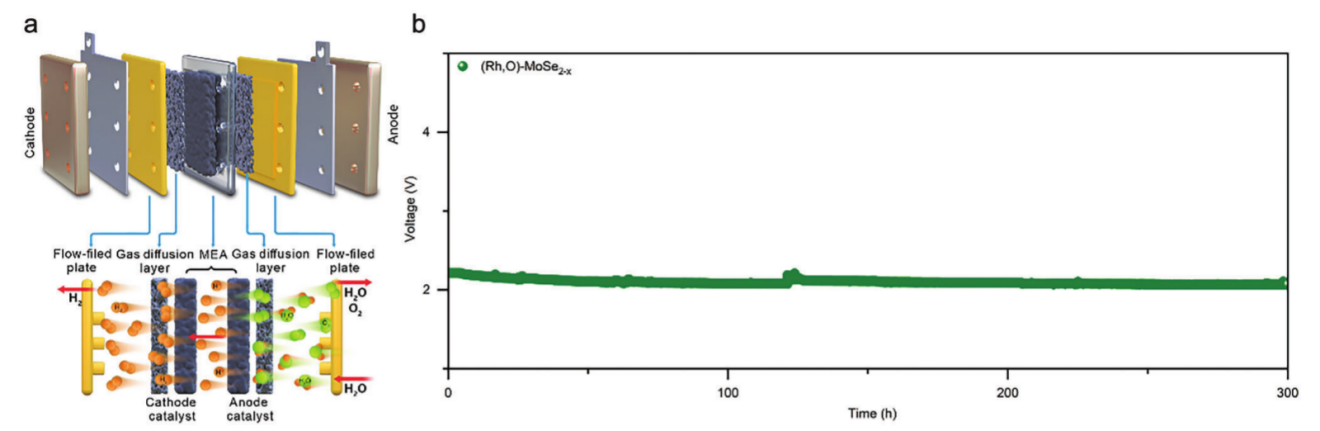 Rh, O-MoSe2-x为阴极电催化剂的PEMWE电解槽的性能