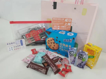 根据学院考研学生反馈的“心愿单”,学院定制考研加油包——不仅有能够帮助同学们叱咤考场的文具包,还有能在闲暇之余补充能量的小零食,以及满载师弟师妹们祝福的刮刮乐卡片。徐晓玲副书记带领职协成员在每份小卡片后写上了自己的祝福语,制作成刮刮乐,最后将考研加油包所有礼物包装准备好,等待考研学子们领取。