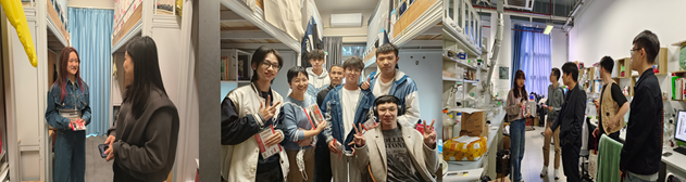 学院党委书记李翠华、院长任祥忠、副院长何传新、李菊英以及副书记徐晓玲各带领一支辅导员和学生干部队伍,全面走访各年级学生宿舍、实验室,并为学生送上精美小礼物,表达学院的关心和问候。