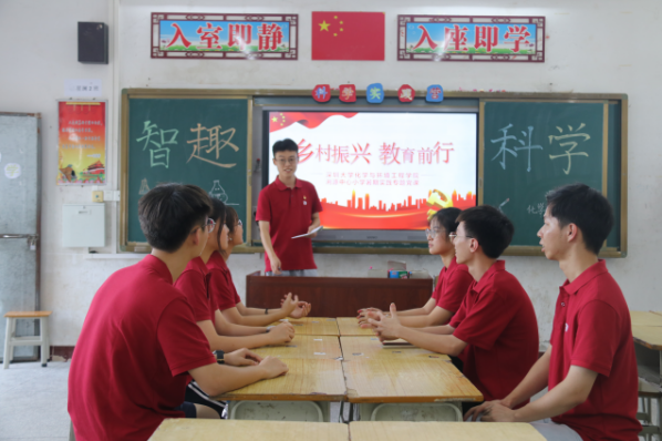为深入学习宣传贯彻习近平新时代中国特色社会主义思想,全面贯彻落实党的二十大精神,引领学生立志做有理想、敢担当、能吃苦、肯奋斗的新时代好青年。2023年7月8日,深圳大学化学与环境工程学院智趣科学团队由研究生第一党支部书记、辅导员王子阁带领六名同学前往河源市和平县浰源镇中心小学,以特色活动“科学实践与创新营”开展乡村教育振兴帮扶和暑期调研活动,此次活动将科学教育辐射到乡村地区,为乡村地区的孩子们创造出学科学爱科学的新环境。