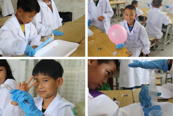 在支教的过程中,同学们发现乡村教育资源匮乏,孩子们腼腆害羞,第一次见到小老师有些生疏,课上不敢发言。团队成员们为了更好地融入到当地学生当中,积极在课前、课后组织小游戏,跟学生们积极互动,联络感情。为了给当地学生更好地学习体验,同学们克服重重困难,每天早起去学校准备实验器材,晚上修改教案到深夜,乐此不疲。