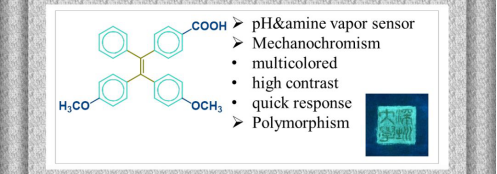 设计基于AIE骨架的气体、pH响应、力致变色材料, 代表性研究工作发表在材料学著名杂志Adv. Funct. Mater. DOI: 10.1002/adfm.2019005162019,in press,该研究工作被高分子科学前沿介绍。