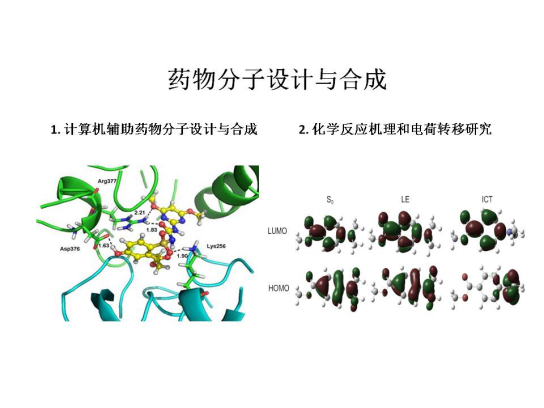 计算机辅助药物分子设计与合成。(1)发展基于密度泛函理论的药物分子设计方法和基于靶标的药物分子设计;(2)对成功设计的药物分子进行合成和生物活性测试。已在著名期刊Journal of the American Chemical Society 和Chem. Commun.  Journal of Chemical Physics等期刊发表SCI论文40余篇,论文被引用次数高达900余次。期刊最高影响因子10.0。