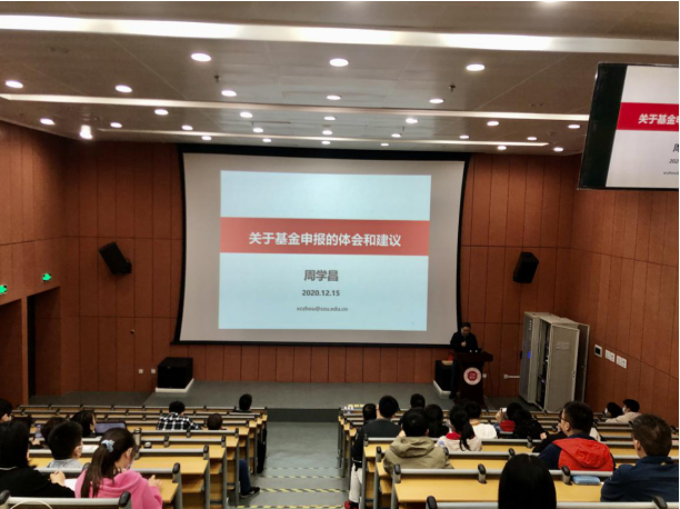 此次动员辅导会特别邀请具有丰富基金申报经验的周学昌教授进行细致辅导。周学昌从自身科研成长和申报经历讲起,从申报书选题、构思和撰写三个方面出发,详细介绍了项目申报过程中的心得体会,并对申请人今后的研究方向和科研内容选择上提出了自己的思考与见解。他强调,申请书中的研究目标、拟解决问题和方案可行性是有机整体,需做到前后呼应。会议接近尾声时,他还鼓励大家积极申报优青项目,分享了对拟申报的学科及撰写技巧等方面的经验。