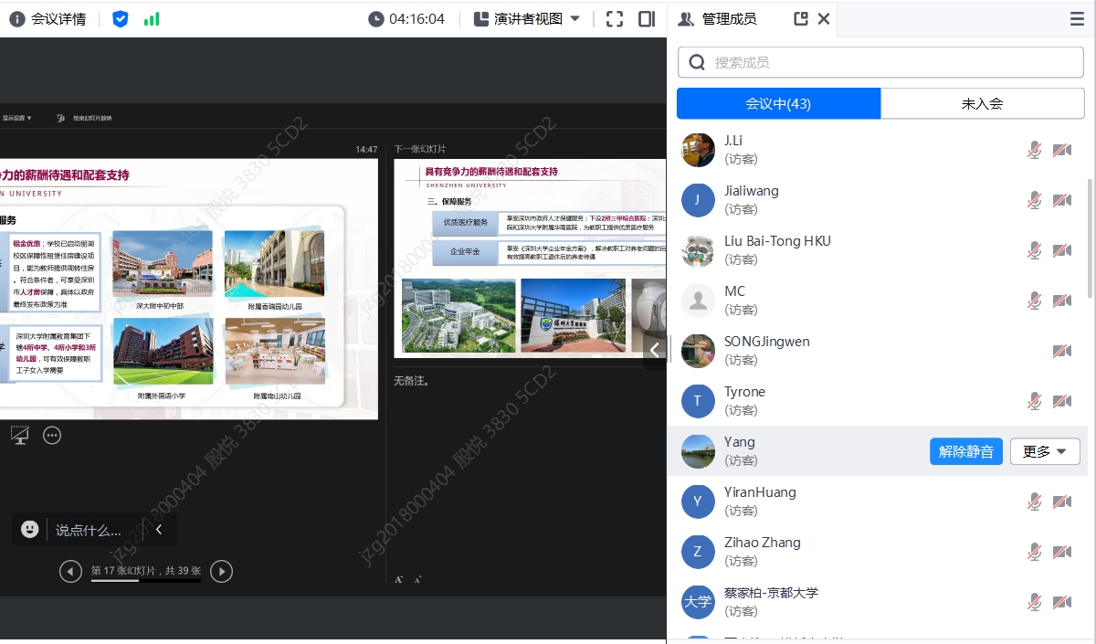 在Q&A环节,参会青年学者积极咨询在人才项目申报和应聘深大教师岗位等方面的问题,学院领导和与会教授做了细致的解答。