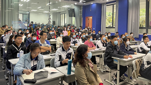 最后,杨恒攀老师向现场的学生与家长讲解了“领航计划”,该计划由深圳大学与深大附中共同推出,通过大中小一体化培养创新型化学材料人才。该计划由深大化环学院和深大附中共同开展基地建设,吸纳优秀高中学生参与特聘教授领衔的科研创新团队。还将发挥高校科学与人文精神的积淀、丰富的人力资源和物质资源优势,学生可选修化MOOC专业先导课、专业实验课、外文科技文献阅读及大学化学、有机化学、生物化学等理论课。杨恒攀老师用科技创新前沿鲜活生动的案例、启发性思考和思维方法,激发同学们科技创新,勇攀科学高峰,杨老师寄语同学们,科学没有国界,但科学家有自己的祖国,欢迎同学们报考深圳大学,积极投身科研事业,实现人生理想,助力祖国腾飞!