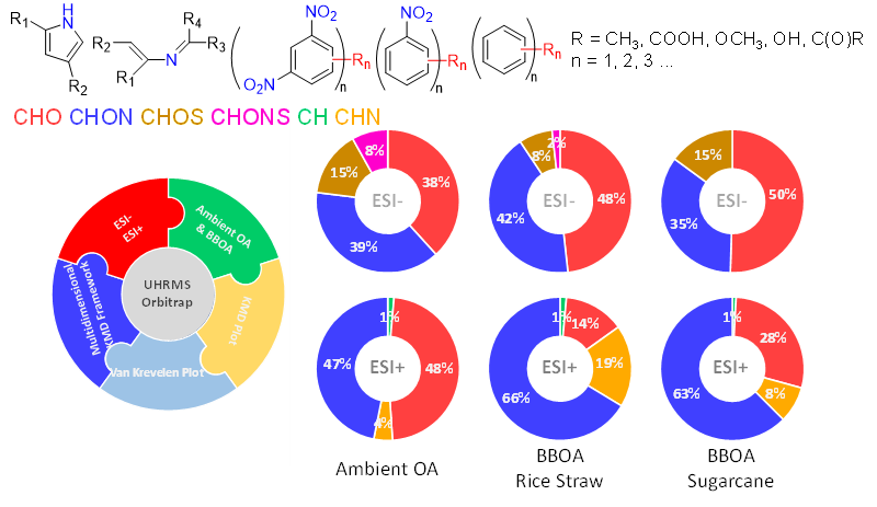 UHRMS识别有机气溶胶未知组分,对大气环境和多种排放源气溶胶非靶向筛查,定性其中物种分布、化学结构和排放特征。