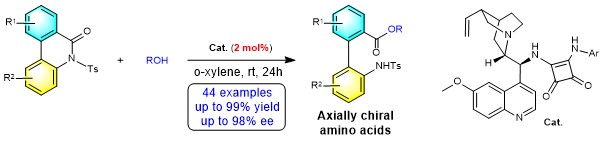 5. Guanjie Wang, Q. Shi, W. Hu, T. Chen, Y. Guo, Z. Hu, M. Gong, J. Guo, D. Wei, Z. Fu*, and W. Huang*. Organocatalytic asymmetric N-sulfonyl amide C-N bond activation to access axially chiral biaryl amino acids. Nature Commun. 2020, 11, 946. (Editors’ Highlights, IF: 16.6)