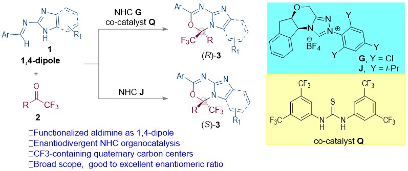 4. Guanjie Wang, Q.-C. Zhang, C. Wei, Y. Zhang, L. Zhang, J. Huang, D. Wei*, Z. Fu*, and W. Huang. Asymmetric Carbene-Catalyzed Oxidation of Functionalized Aldimines as 1,4-Dipoles. Angew. Chem. Int. Ed. 2021. 60, 7913-7919. (IF: 16.6)